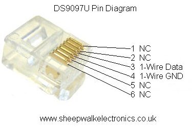 Cable Type: Whilst you can use just about any two core cable for small 1-Wire networks, it is usually better to use a twisted pair cable, the most commonly available being Cat5 Ethernet cable. Connectors: All of our modules (as well as many from other manufacturers) use RJ45 sockets wired to a standard layout that allows you to use cheap and readily available Cat5 Ethernet cables to join modules together to build your network. The exception to this is that the bus master modules we sell (the DS9097U and DS9490R) have RJ12 connectors and not RJ45. So the first cable on your network will need to have an RJ11 or RJ12 connector on it. The First Cable: You can often manage with an old modem or telephone cable if you have one lying around as the RJ45 sockets on the modules will take an RJ11 plug. If you want to do this you need to ensure that the pins are connected the right way round as many modem cables reverse the order of the cables from one end to the other. You need a cable with the middle two pins connected straight through to the same pins on the other cable. See this image for examples of cables that will and will not work. As you can hopefully see on the image the colours need to be in the same order on both ends of the cable. If you don't have a suitable cable, we sell ready made cables which you can find on the Cables and Connectors Page of our online store. Connector Pinouts: If you wish to make your own modules or cables here are the pinouts to help you: RJ45 connector on the modules RJ12 pinout on the DS9097U Host Adapter RJ12 pinout on the DS9490RU Host Adapter |