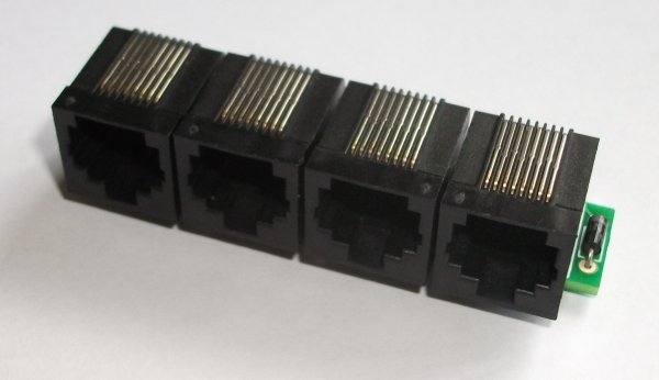 PCB with multiple RJ45 sockets to allow easy connection of several SWE0 sensors to your 1-Wire network.